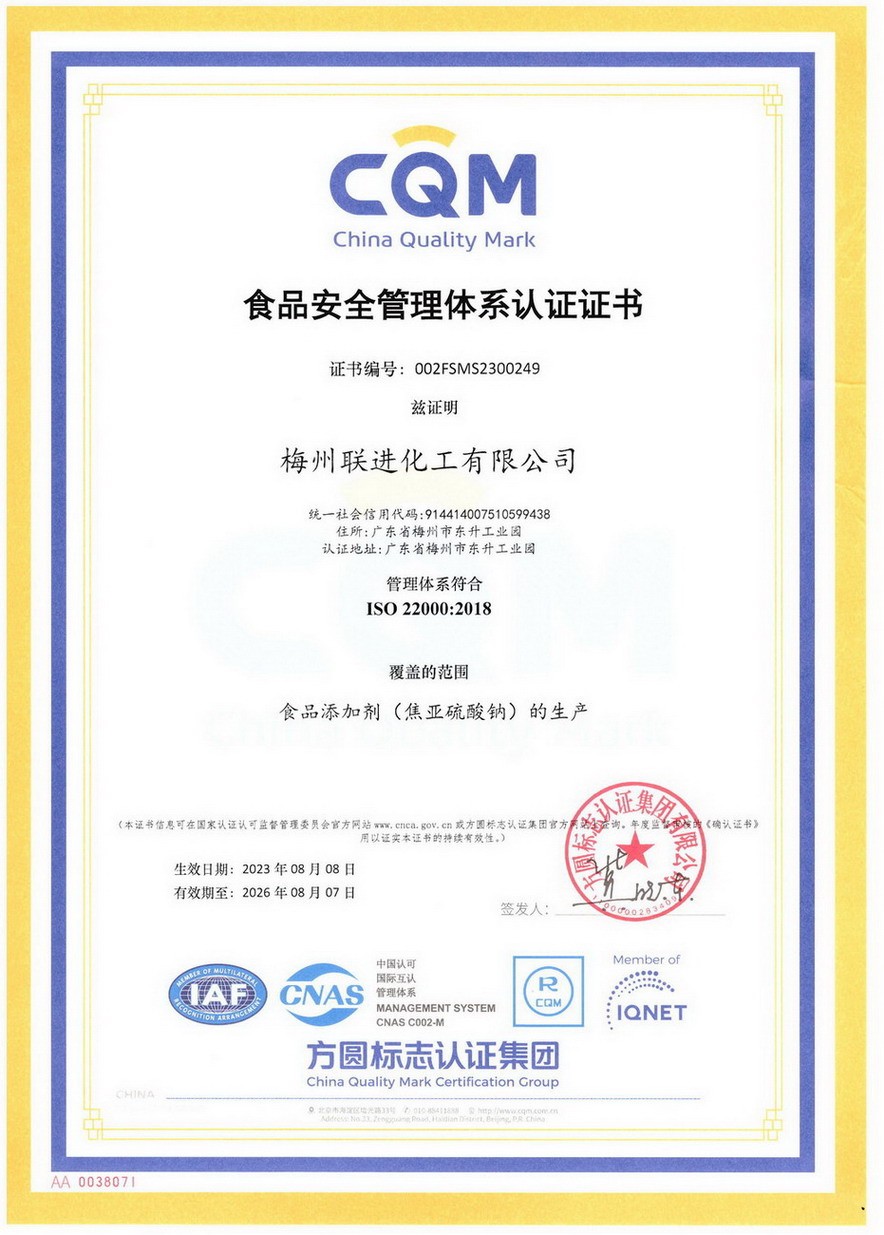 ISO22000體系證書(shū)